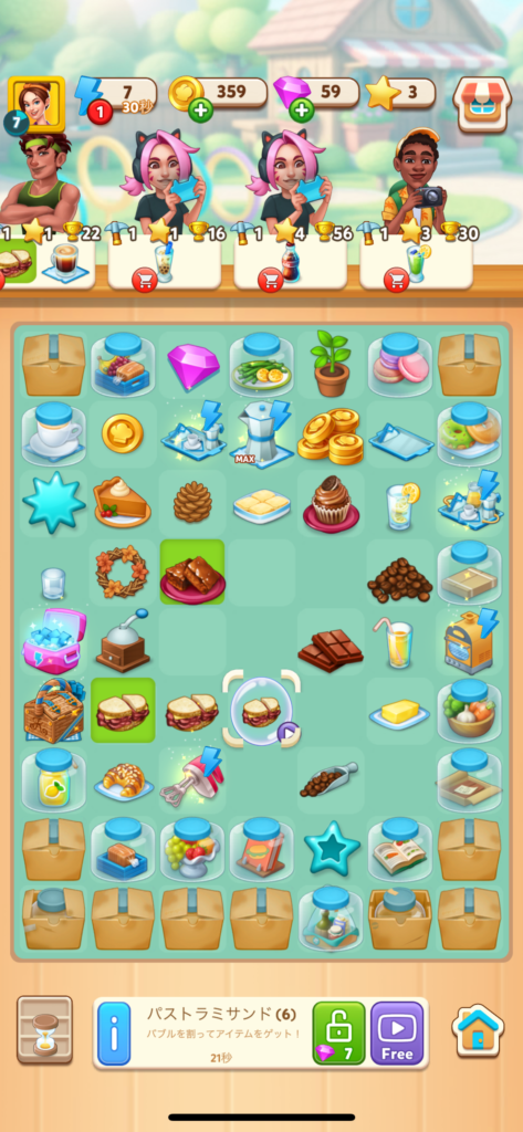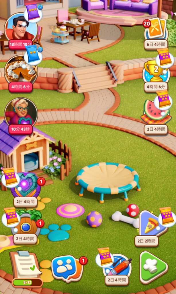 「クックマージ」をプレイしていると、メインのマージ以外に様々なイベントが同時に進行していきます。