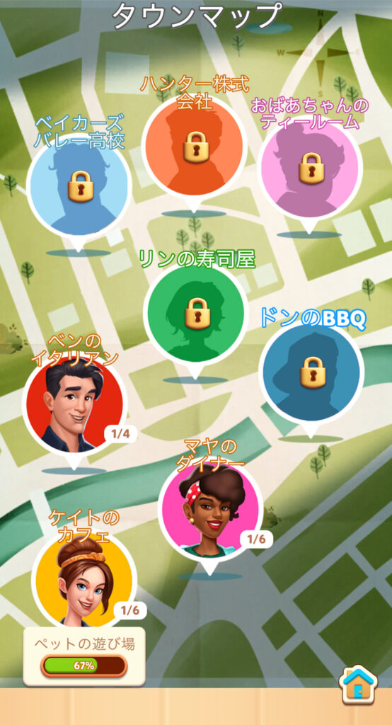 だいたいのマージゲームではプレイヤーレベルが目標になりますが、クックマージではエリア開拓がプレイの指標です。