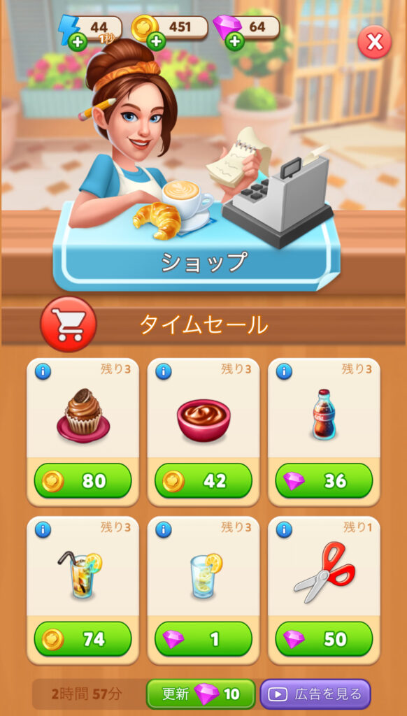 また、タイムセールではコインやダイヤを使ってアイテムを獲得できます。