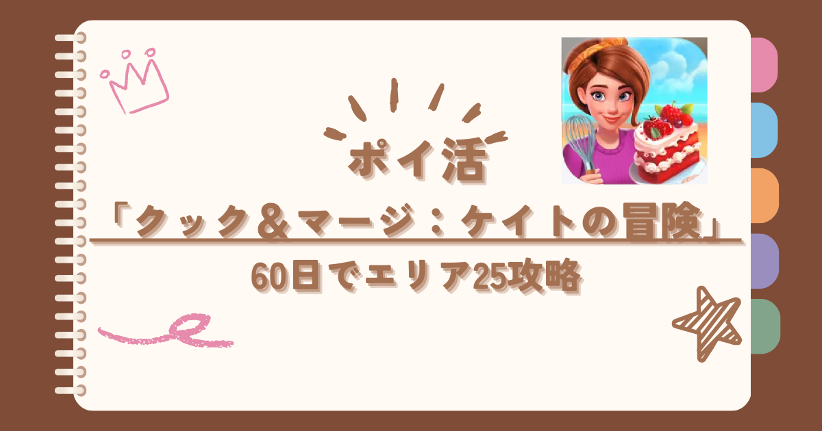 この記事では「ポイ活「クック&マージ:ケイトの冒険」60日でエリア25攻略中」と題して、このような疑問に答えていきます。