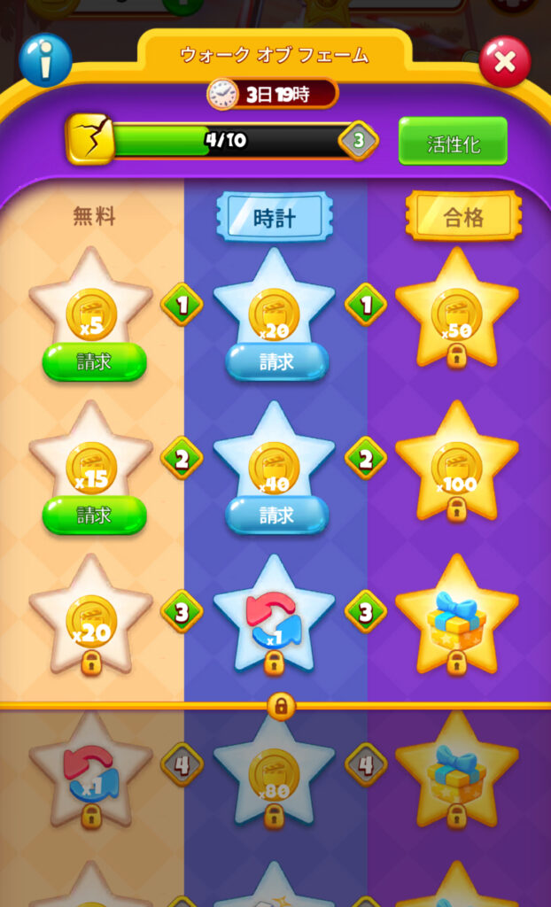 - レベルをクリアして星を集め、シーンタスクをこなしていく(ポイ活的には不要)