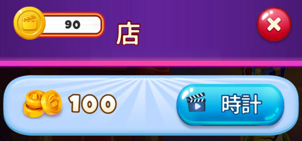 コインは、店(トップ画面のコイン右横の+で出てくる)内で1日1回広告視聴で100コイン獲得可能。