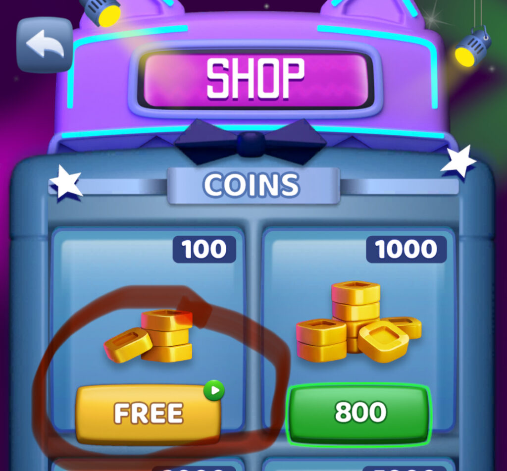 コインはSHOP内で1回の広告視聴で100コイン獲得可能。