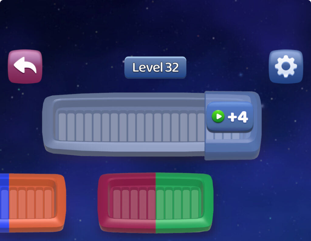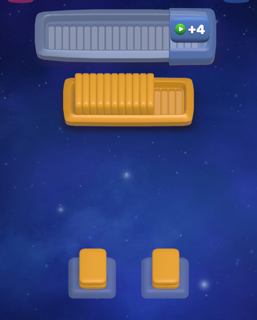 「ソートダッシュ」は、色が付いたタイルを同じ色のトレーに必要枚数乗せていくゲームです。