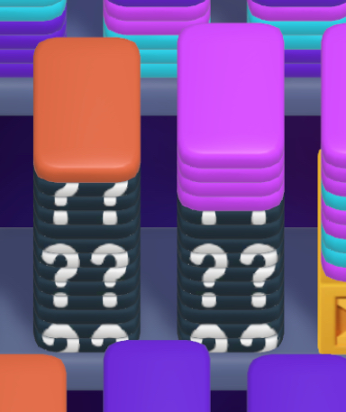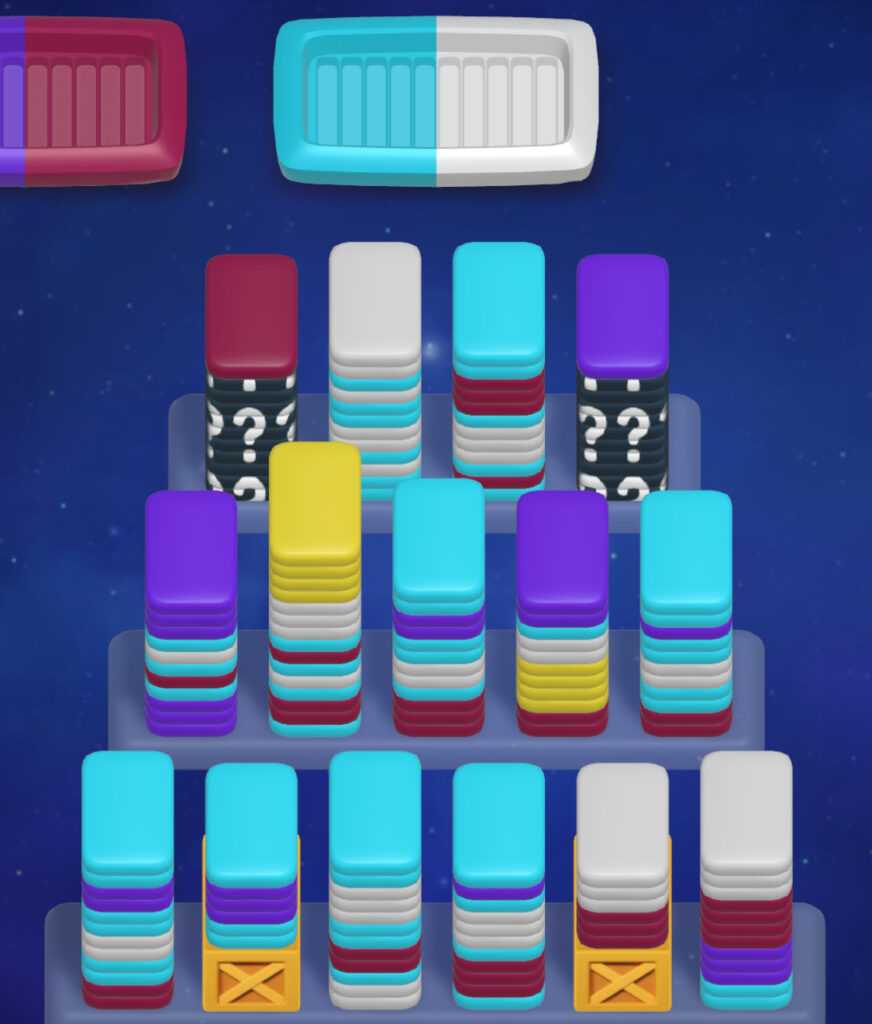 「ソートダッシュ」は、盤面に様々な色のタイルが積まれていて指定の色&枚数をトレーに乗せます。